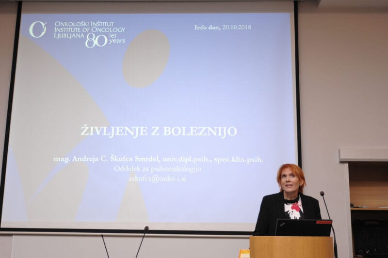 Klinična psihologinja mag. Andreja Cirila Škufca Smrdel, vodja odd. za psihoonkologijo na Onkološkem inštitutu v pričujočem videu spregovori o različnih psiholoških vidikih življenja z boleznijo ter o pomembnih virih pomoči in podpore za bolnika in svojce ter opozori na vlogo psihoterapevtske in psihiatrične pomoči. Pove tudi, kje bolniki z rakom lahko poiščejo pomoč.