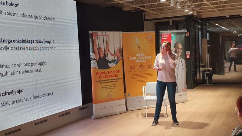 25.11.2019 je v prostorih Triglav Laba v Ljubljani potekala posvetovalnica o prehrani bolnika z rakom med boleznijo in po njej. Specialistka klinične dietetike iz ambulante za klinično prehrano na Onkološkem inštitutu in strokovnjakinja našega rehabilitacijskega programa za bolnike s krvnimi raki Denis Mlakar Mastnak je skozi predavanje in posvet razložila pomembne informacije glede prehrane onkološkega bolnika. Predstavila je smernice za uravnoteženo prehrano, poudarila, kako pomembna je le ta za kakovost življenja bolnika, za manj zapletov, za uspeh zdravljenja in posledično za preživetje bolnika. Poudarila je, da je nujna tudi ustrezna in nadzorovana telesna aktivnost ob ustrezni prehrani, saj je oboje skupaj pomemben gradnik mišične mase, ki ob bolezni in zdravljenju ter brez ustreznega hranjenja in vadbe, upada in bolnika lahko vodi v kaheksijo. Opozorila je tudi na pasti alternativnih diet med zdravljenjem in odgovorila na številna vprašanja udeležencev, ki so prejeli brezplačen priročnik, ki smo ga v Združenju L&L pred kratkim pripravili za bolnike in njihove svojce in katerega avtorica je Denis Mastnak Mlakar.