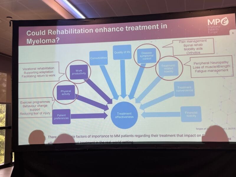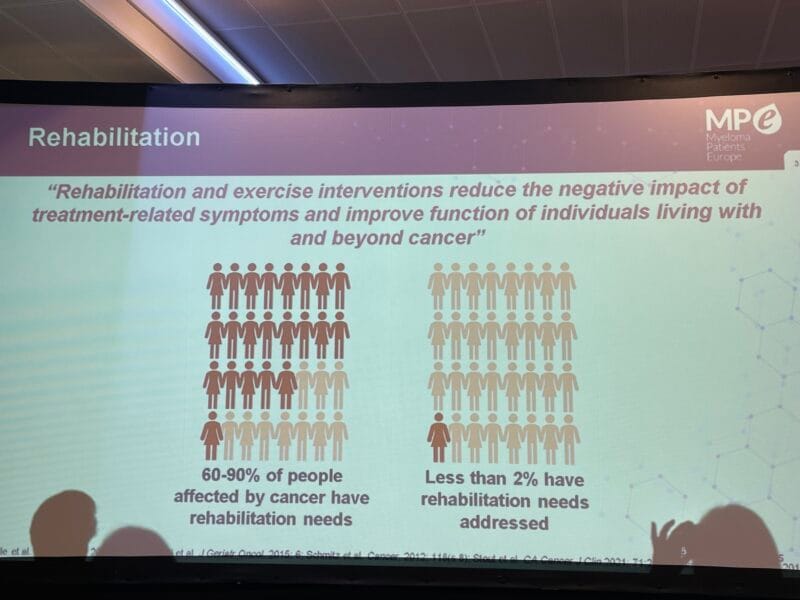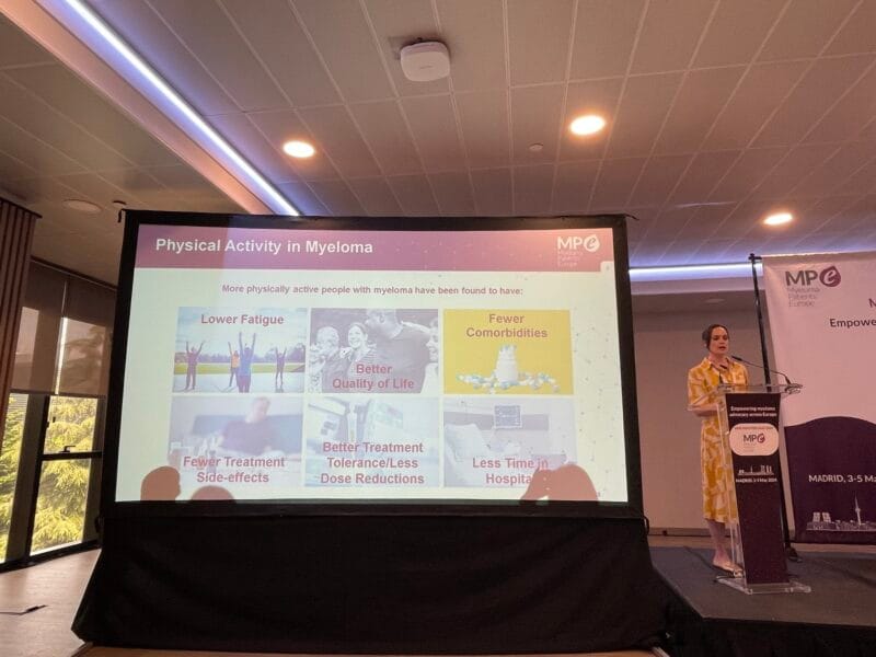 Orla McCourt, klinična fizioterapevtka in raziskovalka s hematološkega oddelka University College Hospital v Londonu se je v predavanju posvetila fizikalni rehabilitaciji bolnikov z diseminiranim plazmocitomom. Poudarila je njen pomen za kakovost življenja in uspeh zdravljenja ter okrevanja.